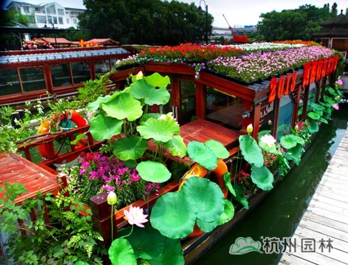 据杭州园林园艺种业事业总部、青山湖·花园中心园艺师王元元介绍,为了增强荷花船的观赏性和艺术性,设计人员将船体“细分”成不同区域,因地制宜进行植物布景。