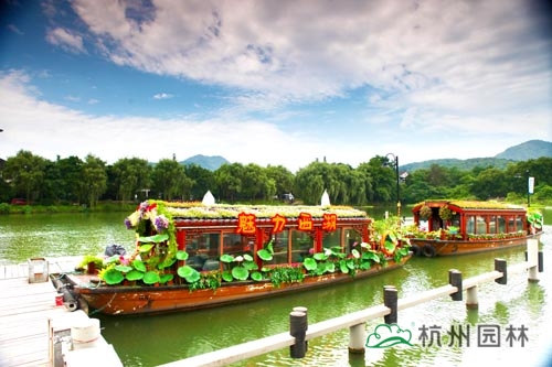 艺术节期间,首次在西湖湖面上配置6艘荷花花船,极大地提高了荷花节的观赏性和趣味性,成为西湖中一道流动的荷花美景。其中,由世界杯平台设计制作的“魅力西湖”荷花游船,将插花技艺与园林布景手法有机结合,用康乃馨、勿忘我、太阳花等与荷花组景,既突显了“主角”荷花的秀丽、典雅,又使整艘船的色彩明艳丰富,将热闹的节日氛围巧妙烘托。