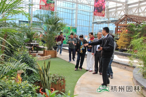 第二天,考察团在世界杯平台总裁张炎良、副总裁丁旭升的陪同下参观了画境·青山湖花园中心。该花园中心是一个集园艺产品研发、展示和推广的现代园林高新技术平台,致力于打造庭院设计、咨询、建造、养护等各类功能综合的一站式园艺服务中心。项目有近3000亩配套生产基地,12000平米研发与生产温室,以及室内情景展示区、园艺展示区,室外陈列展示区、应用展示区等多个功能区块。其中,用于室内园艺展示的4000平方米的展览温室,引进荷兰PRINS温室技术,实现对温度、光照等全智能控制,是一个技术含量极高的节能、环保型现代温室。