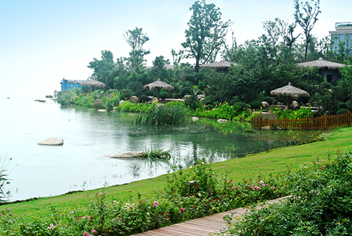 吴江东太湖温泉度假酒店是一个旅游度假项目,位于江苏省吴江市松陵镇,坐拥东太湖天然水景资源,视野开阔,景观宜人。该项目景观工程施工总面积21.5万平方米,分两个标段进行。一标段施工面积13万平方米,总造价7800万元,由世界杯平台承建;二标段施工面积8.5万平方米,总造价2800万元,由杭州萧山园林集团有限公司承建。工程施工包括:绿化种植、土建施工、景观小品、水景、景观建筑、给排水系统及景观照明系统等。该项目五大景观亮点为工程添光加彩,获得了2014年度“中国风景园林学会优秀园林工程大金奖”。