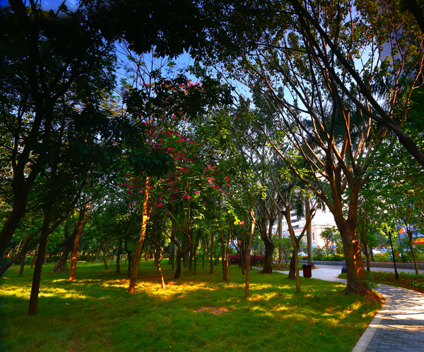 清晨,老人们在此晨练、健身,中午,上班族在此漫步、小憩,晚上,孩子们在此欢笑、嬉戏……一个宁静休闲的绿色空间,让更多的人可以在这个快节奏的城市里慢下来,让心灵得到短暂休憩。