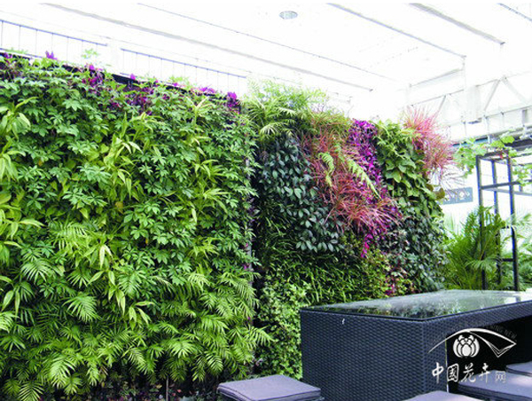 进入室内展场,迎面而来的是一大面绿植墙。这种新型绿植墙取代传统土壤,使用一种称为保浮科乐的仿土海绵栽植植物。它轻巧、干净,并且可以随意制成不同形状,除了大型绿墙,展场里还有适合家庭和办公室摆放的壁挂式容器盆。无论是商业空间还是居室花园,都可以使用这种简便的方法打造出自己心仪的立体绿化景观。
