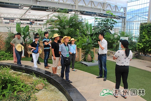 画境•青山湖花园中心总经理助理徐伟峰带领大家走进花园中心的各个展示区,分别参观了花园中心室内园艺展示区、户外容器苗展示区、室外情景展示区等。