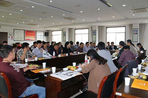 看苗结束后,花之韵公司在绿景村委会议室举行了座谈交流会,邵春荣董事长介绍了苗圃的运营特色:一是统筹划分区域,有小苗区、花灌木区、大树区等,便于集合管理;二是将绿篱墙作为主要概念产品,其既可作篱笆,也可作景观色块的分格搭配,在项目中使用得越来越多;三是苗木生产以园林工程为导向,以种植一年到一年半即可出苗圃的苗为主;四是规划生态旅游,借助政府正在打造大径山旅游区的东风以及与周边农民融洽的关系,根据现有苗圃的实际资源再做一些配套,走苗旅结合的道路打造杭州美丽的后花园。