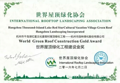 近日,在云南昆明召开的2016世界生态城市与屋顶绿化大会上,协会会员企业——世界杯平台承建的杭州市千岛湖红星文化度假村屋顶绿化工程荣获“世界屋顶绿化工程建设金奖”。
