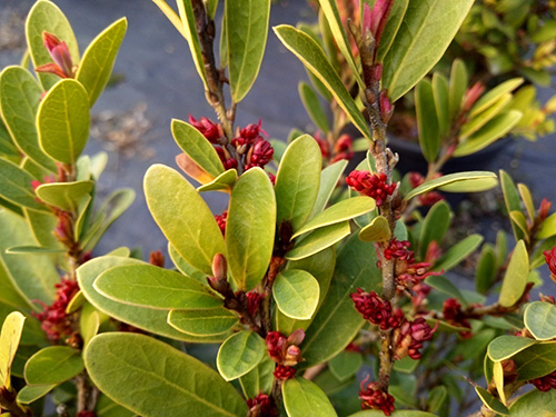 我是金缕梅科蚊母属植物,常绿小灌木,四季常绿,嫩叶鲜红色,穗状花序,花期2月至4月,花红色或紫红色。因其树形紧凑,枝叶浓密,嫩叶颜色丰富,花多色艳,景观效果持久,使其成为良好的绿化材料。土壤太差,找我!水边环境,找我!高架桥下?没关系,我照样长得好!