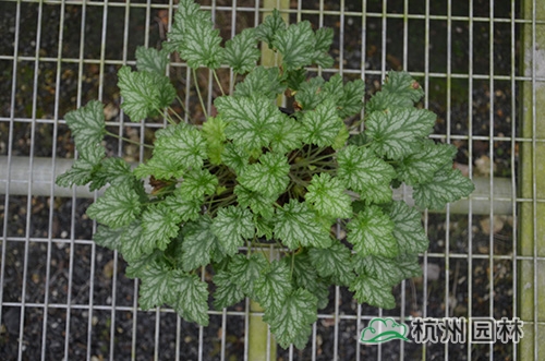 矾根叶形也变化多样,基部心形或楔形,掌状浅裂至深裂,边缘波状,浅根系,叶基生,花期一般为4~10月,花很小,呈钟状,两边对称。幼苗长势缓慢,成苗后生长旺盛。绿期长,能够在-15℃以上的温度下生长。具有喜半荫、耐全光、耐旱性和耐寒性强等生理特点。适宜富含腐殖质的土壤。喜中性偏酸,适宜的PH值为5.8~6.2,能够在倾斜地方生长。冬季不落叶,枝叶生长稠密,株型圆整,覆盖性强,花和叶都比较漂亮。