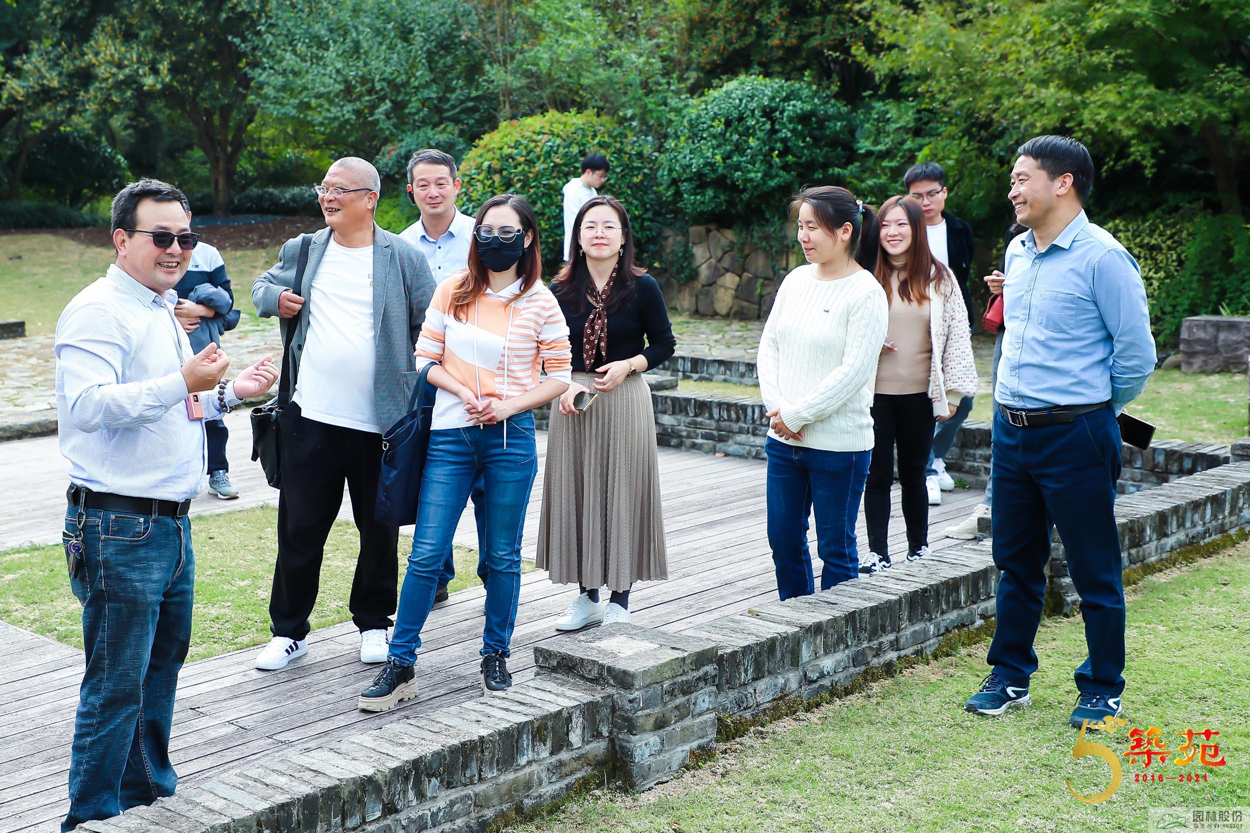 考察人员在花园中心合影