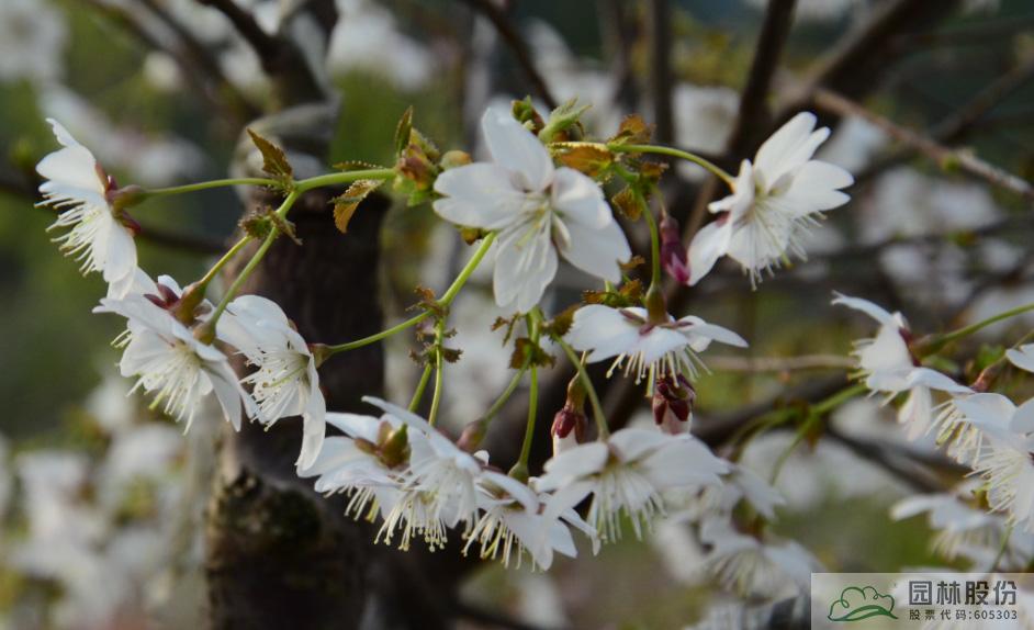 这些樱花品种花色丰富,特色各异,其中,‘纤秀’为落叶小乔木,树皮灰白色,小枝灰棕色;叶片卵状椭圆形;花先叶开放,总状伞形花序,每花序有花3~5朵,稀2朵;花梗长12~17mm,绿色;花瓣白色,或花瓣边缘粉色,中下部白色,花径2.5~2.8cm,核果红色,成熟后直径约1cm。花期2~3月。