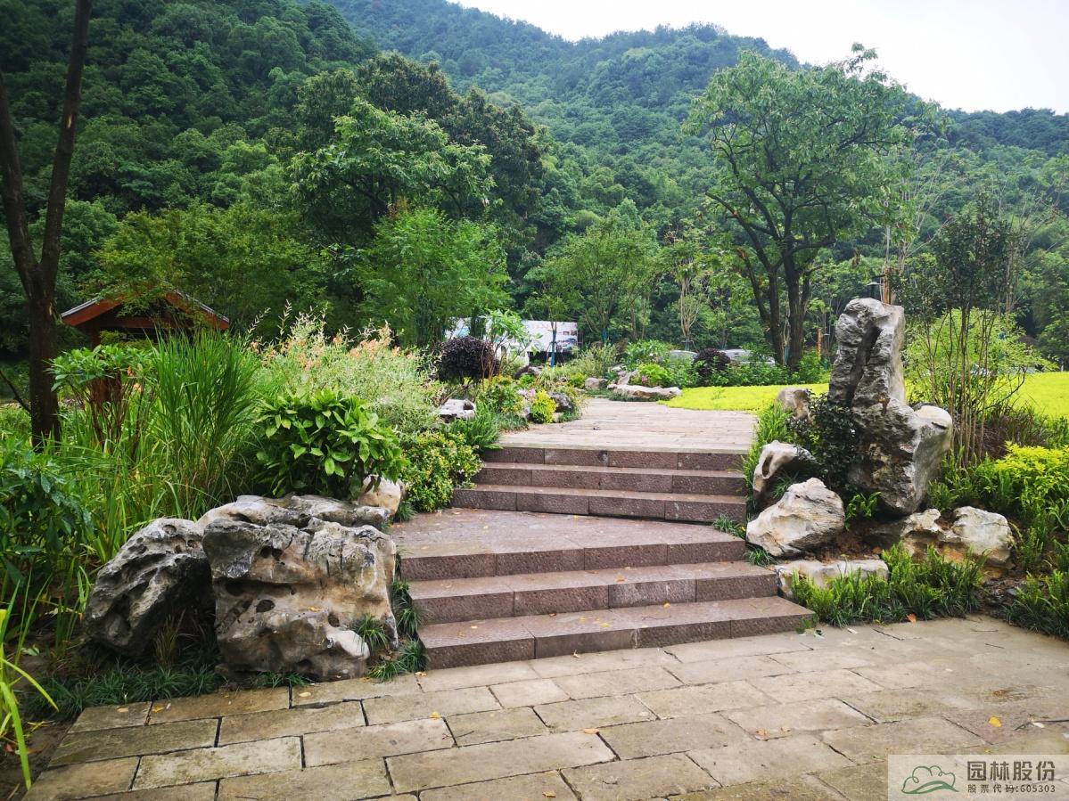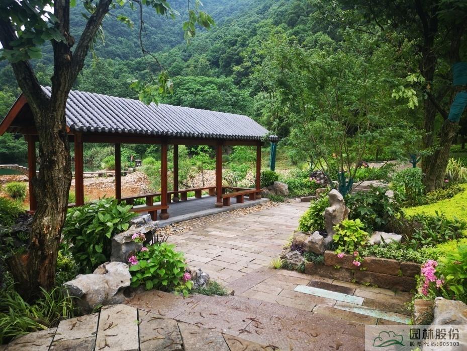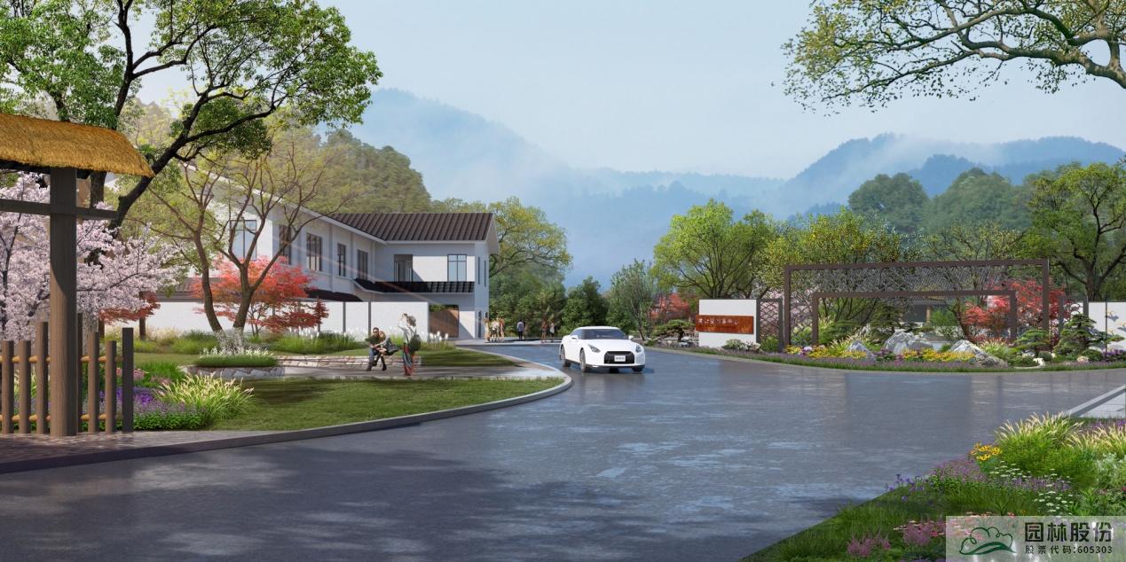 植被梳理:整理入口处现状竹林,增加草花丰富景观层次;在入口服务用房周围设置花境庭院,提供休闲茶座供人休憩;