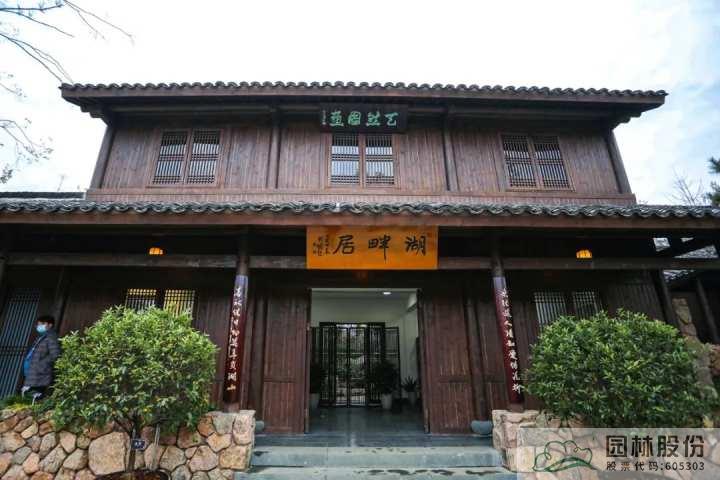 穿过四眼井旁边的“真逸”院门,来到园内的第三大展区——湖居。这幢木石结构的二层小楼是杭州园内的主要建筑——“湖畔居”。在杭州园内,它依山傍湖,有茶园小院、古井山道相伴左右,面前是一片开阔的湖面,巧妙的设计将园里园外融于一景,本届园博会的标志性建筑吕梁阁近在眼前。在这里可以品茗闲谈,感受南宋风情;也可以凭栏远眺,赏湖光山景。