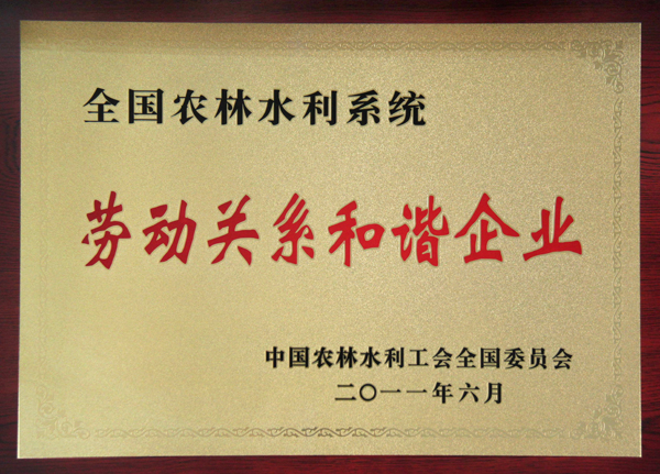 公司荣获“全国农林水利系统劳动关系和谐企业”称号